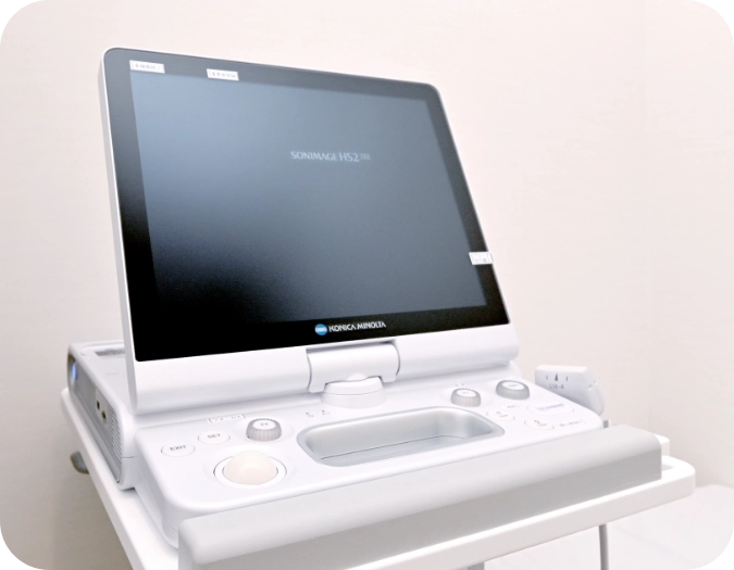 SONIMAGE HS2は、受診者の負担が少なく、リアルタイムに画像を観察する事が可能で、同一部位に対して複数の方向から超音波を送受信して画像を構成する空間コンパウンド処理を行うことにより、被検部位の裏側近くまで回り込んだ検査画像を提供します。