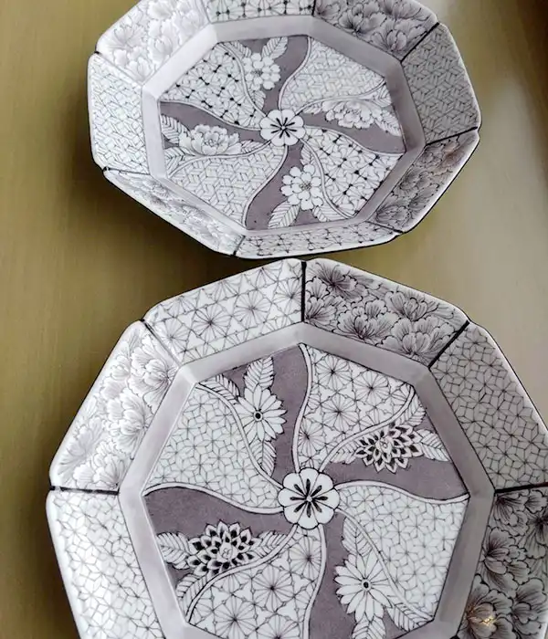陶芸(絵付け):真っ白の器に絵付けをしていきます。